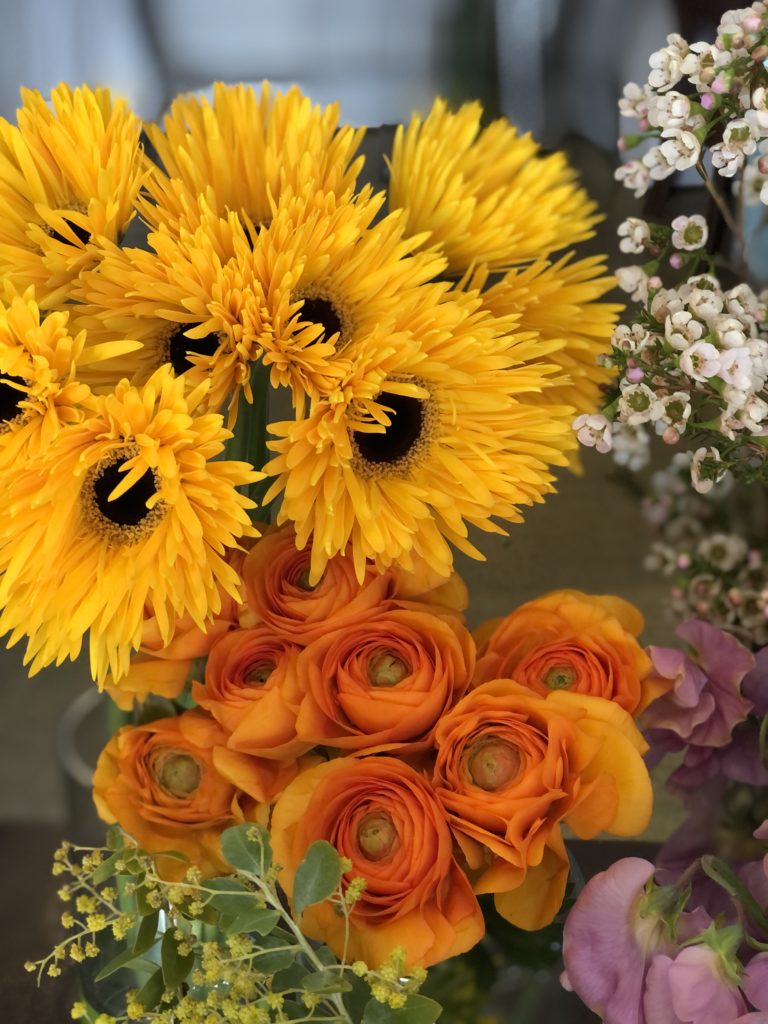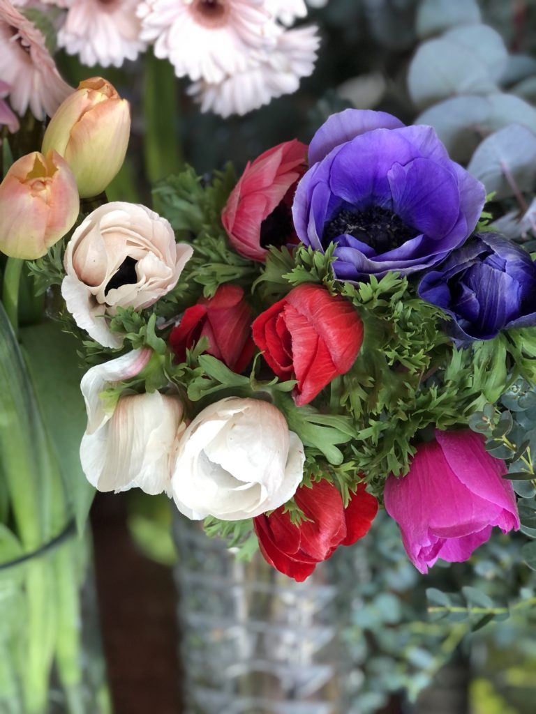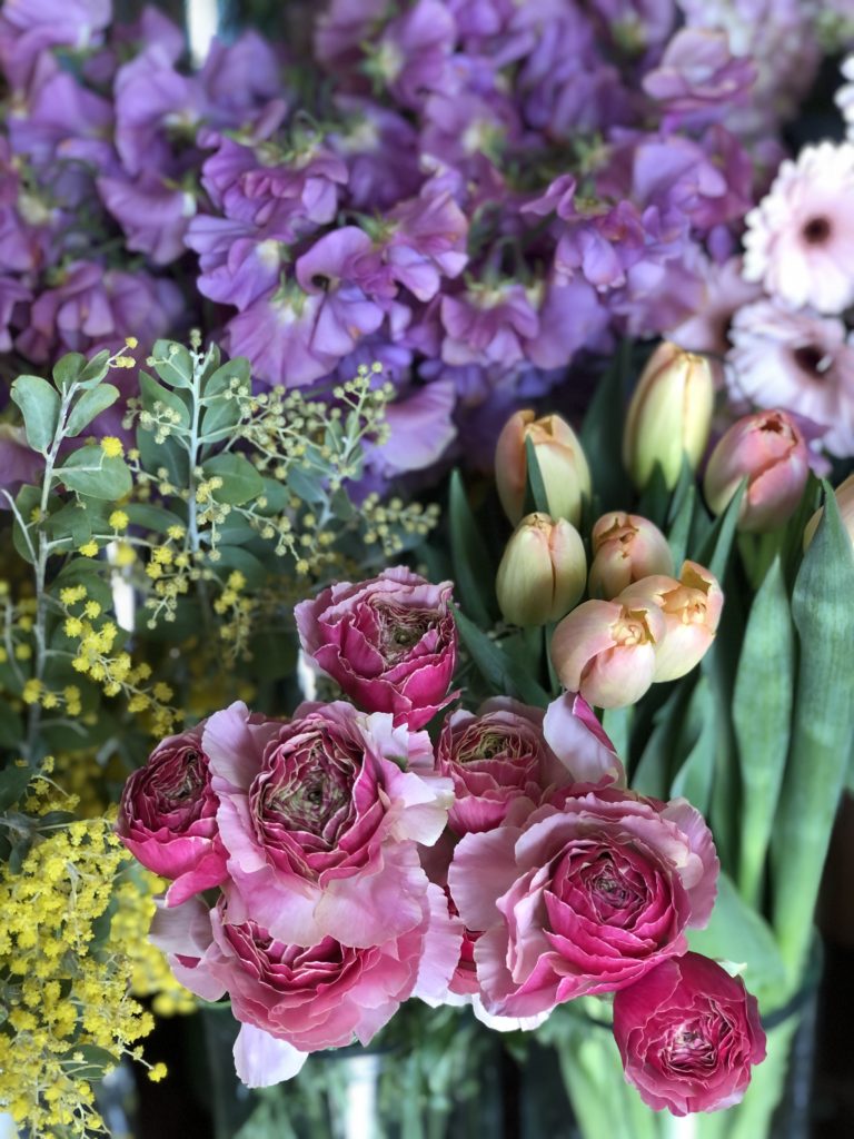 おしゃれ系のスイートピーやラナンキュラス、チューリップ。ビビット系のガーベラやラナンキュラスも人気です。